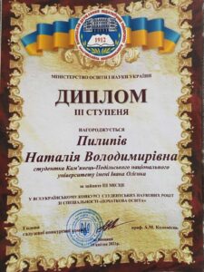 ДИПЛОМИ ТА ГРАМОТИ НАШИХ СТУДЕНТІВ ЗА ВАГОМІ ЗДОБУТКИ З НАУКОВОЇ ДІЯЛЬНОСТІ